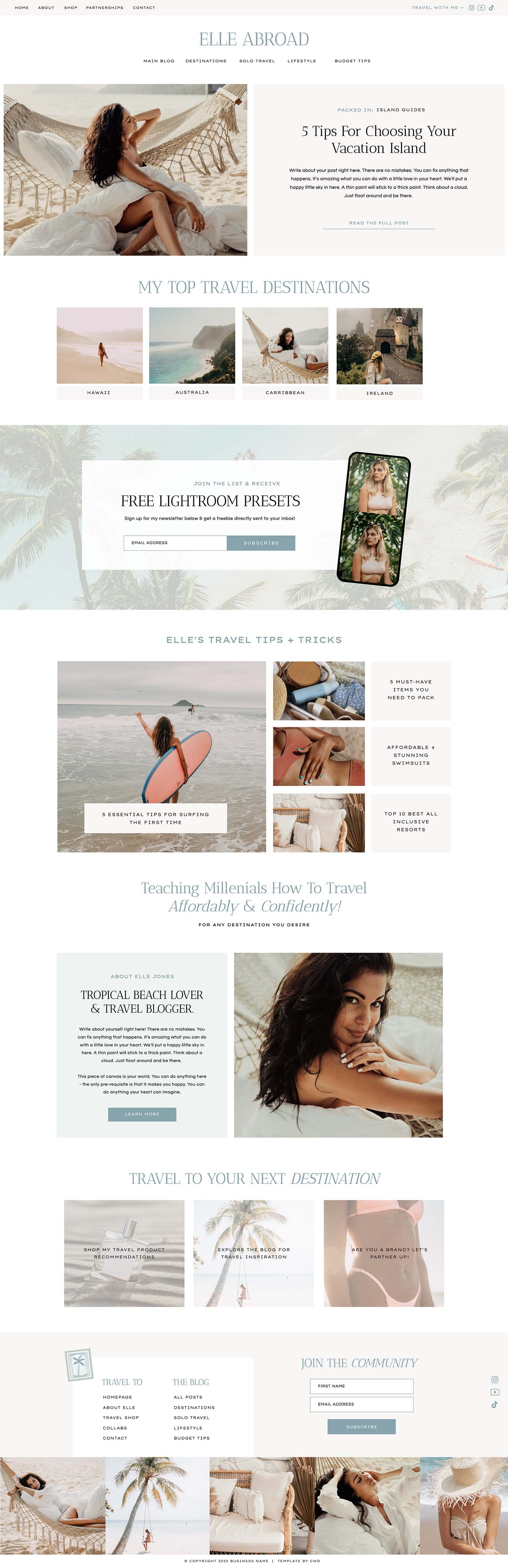 Showit Blog Website Template for Travel Bloggers & Content Creators